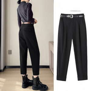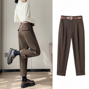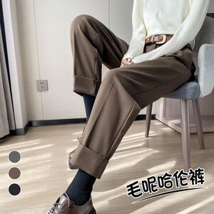 上档次加厚保暖毛呢九分烟管裤女2025秋冬季高腰西装裤直筒哈伦裤