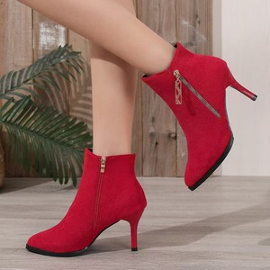 高跟短靴女2025秋冬加绒时装细跟女靴尖头百搭显瘦韩版英伦风靴子