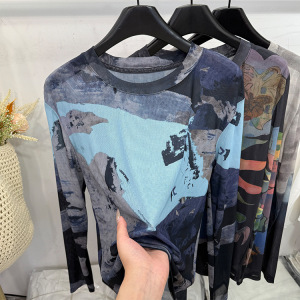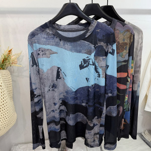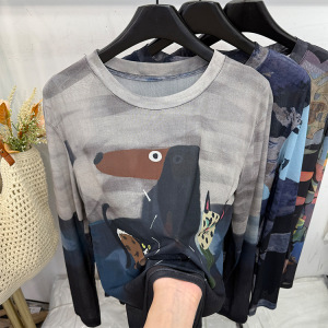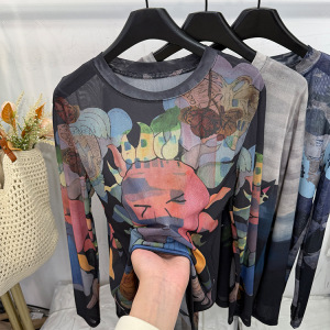 轻薄款卡通印花网纱长袖T恤女2025夏新款洋气太阳花防晒衫打底衫