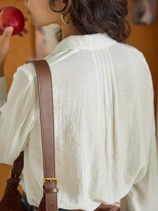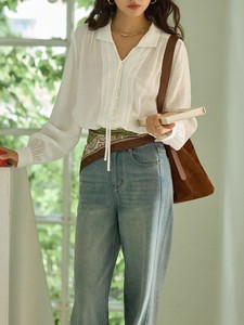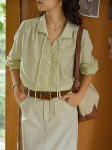 solighter 法式复古v领系带长袖衬衫女秋季2025新款花边宽松衬衣