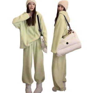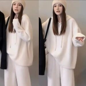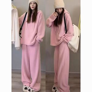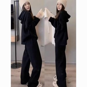 胖mm大码2-300斤软糯德绒连帽卫衣套装秋冬休闲上衣阔腿裤两件套
