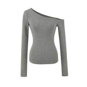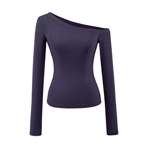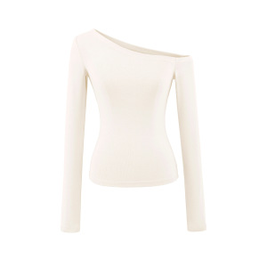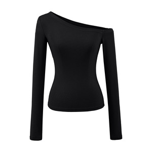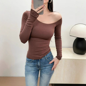 甜辣斜肩长袖T恤女2025早秋款可外穿修身内搭打底衫纯欲露肩上衣