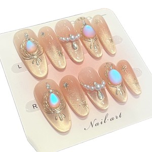 波斯湾 纯手工穿戴甲猫眼法式手绘美甲高级气质美甲贴穿戴甲批发