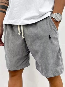 新款欧美2025刺绣小马灯芯绒男士纯色绑带运动裤五分休闲宽松短裤