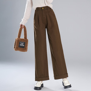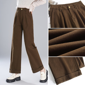 咖色休闲阔腿裤女2025年春秋季时尚高腰宽松韩版小个子垂感直筒裤