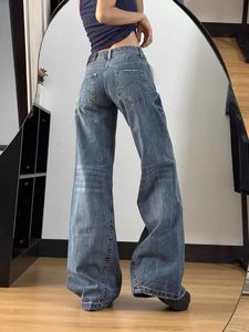 美式复古折痕磨白牛仔裤女夏季低腰显瘦宽松直筒阔腿拖地梧桐裤子