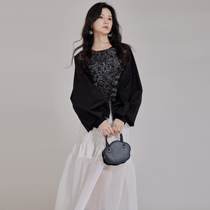 【白月光精选】设计感蕾丝拼接白色衬衫女秋季大袖子小众别致衬衣