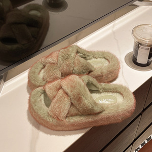 毛毛拖鞋女2025新款鞋秋款厚底增高毛网红鞋夏外穿毛拖毛绒棉拖棉