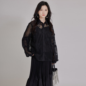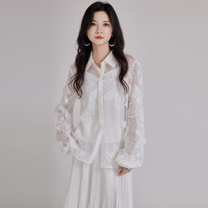 【温柔绘花】小众设计重工蕾丝刺绣花朵衬衫女2025秋廓形别致上衣
