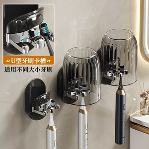 牙刷置物架免打孔漱口杯刷牙杯卫生间收纳壁挂式电动牙刷牙具挂架