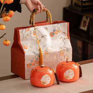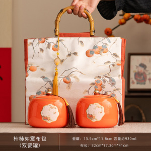 陶瓷茶叶罐密封罐套装柿柿如意高端礼盒装红茶普洱金骏眉白茶空盒