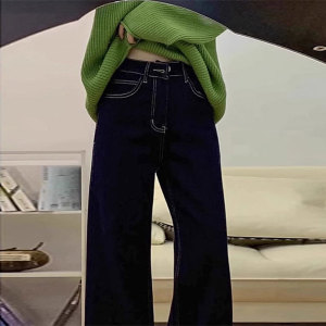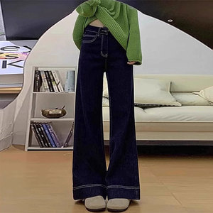 设计感美式深蓝色牛仔裤女2025秋季新款辣妹风百搭高腰显瘦阔腿裤