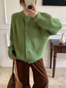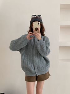 纯色简约圆领粗针开衫2025秋冬季韩系慵懒风百搭气质软糯毛衣外套