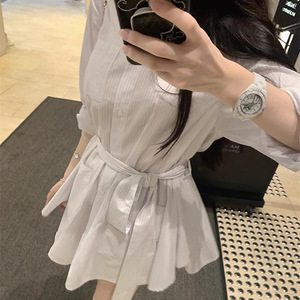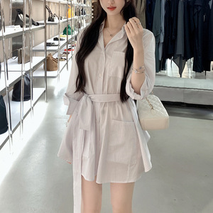 2025年早秋季新款千金感气质姐姐早秋条纹长袖连衣裙