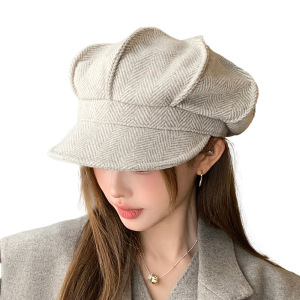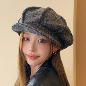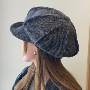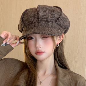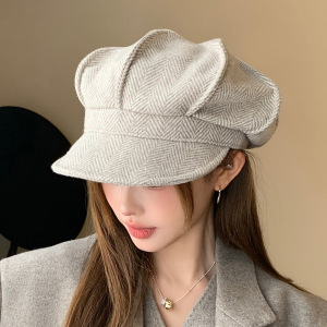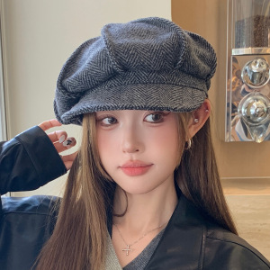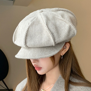 韩版复古百搭八角帽子女春秋季时尚简约贝雷帽大头围云朵画家帽子