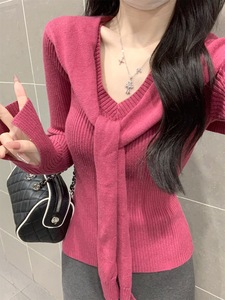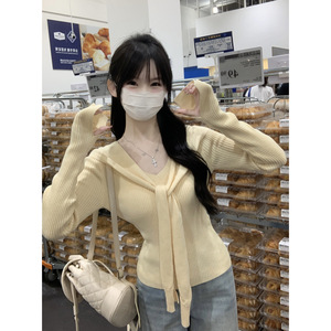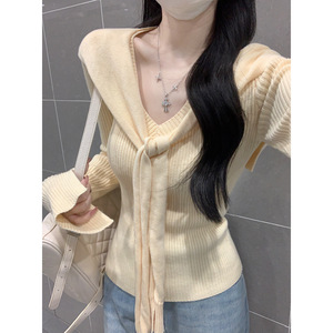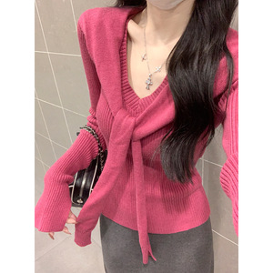 好物2025秋季韩版披肩可拆卸针织衫V领长袖6羊毛修身打底上衣女装