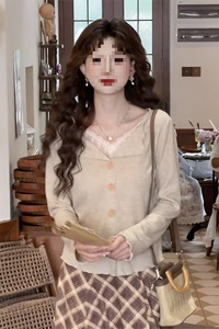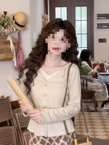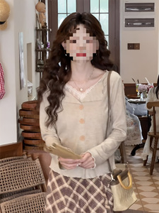 法式高级感木耳边开衫杏色翻领上衣女早秋新款针织衫设计感小众