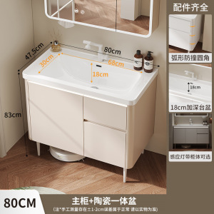 奶油风蜂窝铝浴室柜加深陶瓷一体盆阳台柜洗手盆一体柜落地洗漱台