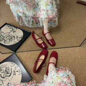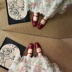 内增高~法式方头玛丽珍单鞋女鞋子2025年新款复古平底鞋