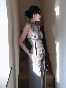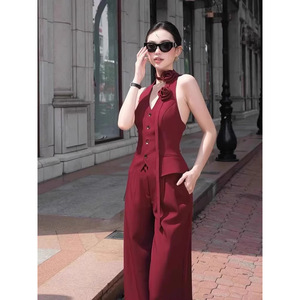 法式小香风西装马甲女秋季穿搭一整套职业装高腰显瘦阔腿裤两件套