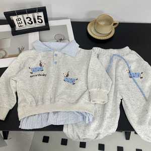 2025新款早秋卡通儿童韩版拼接洋气时尚秋款假两件套装长袖春款