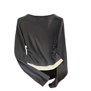 亚马逊假两件纽扣收腰打底衫2025秋冬新款纯欲显瘦小蛮腰上衣长袖