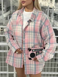 欧美2025秋季新款衬衣亚马逊跨境慵懒风百搭宽松格子长袖女式衬衫