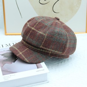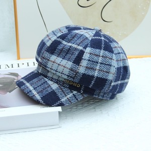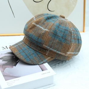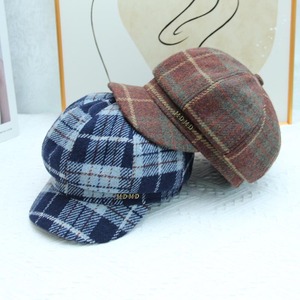 秋冬季毛呢格子八角帽女英伦显脸小复古鸭舌贝雷帽学生画家报童帽