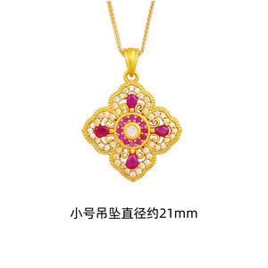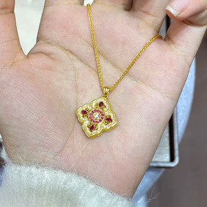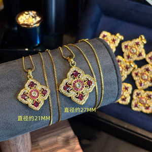 小红书韦雪同款四叶草项链轻奢气质国风真金电镀镶钻红刚玉吊坠女