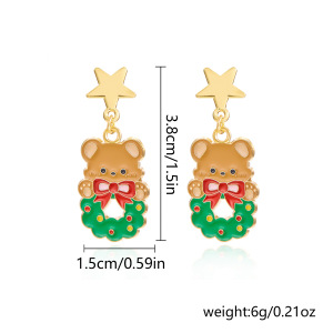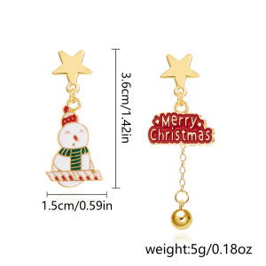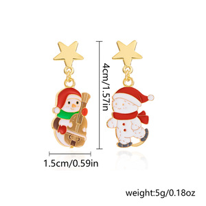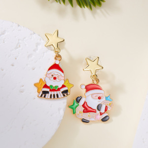 跨境新款画油圣诞节耳环创意百搭不对称圣诞老人雪人耳钉耳环批发