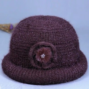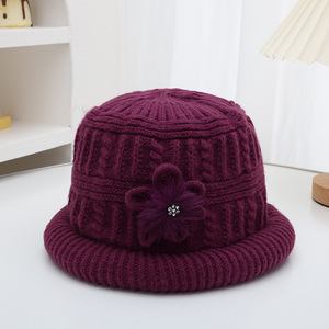 冬季时尚老人加绒奶奶加厚保暖女士针织毛线帽妈妈中老年帽子