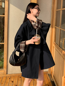 撞色短款风衣外套女2025初秋新款韩系小个子英伦风春秋高级感大衣