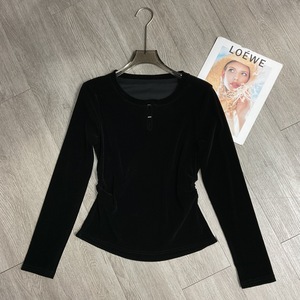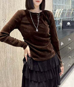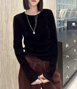 2025早秋新款时尚圆领植绒长袖上衣正肩修身显瘦打底衫女不退换
