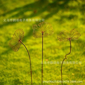 跨境热销荷叶状锈色金属花园地插 乡村田园风格户外庭院装饰好物