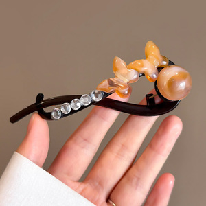 黄咖蝴蝶闪钻扭扭夹-10.5CM