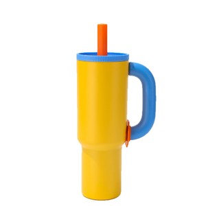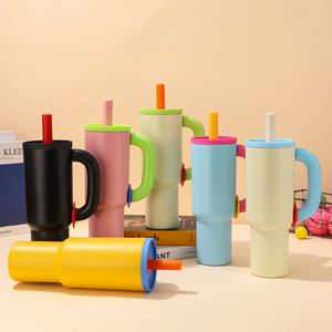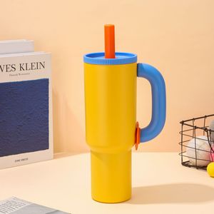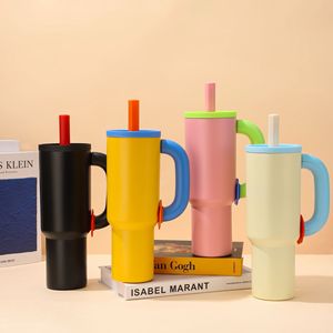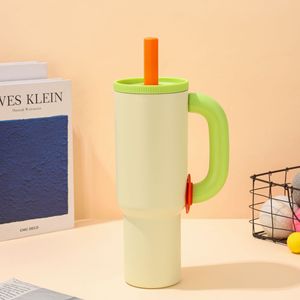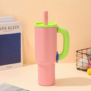 新款巨无霸高颜值304不锈钢保温杯多巴胺便携手柄吸管车载汽车杯