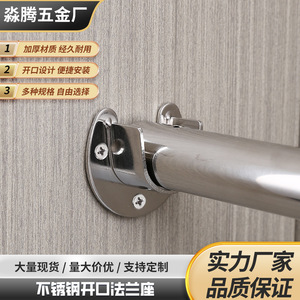 不锈钢开口法兰座衣柜挂衣杆固定底座衣托窗帘杆毛巾杆圆管座批发