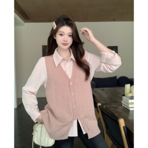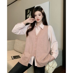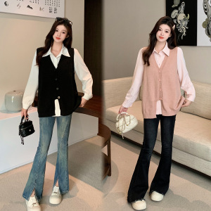 清实拍2025秋大码不规则针织马甲衬衫设计感显瘦套装69226+62158