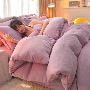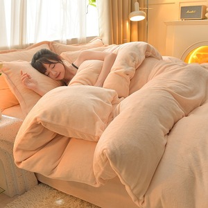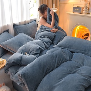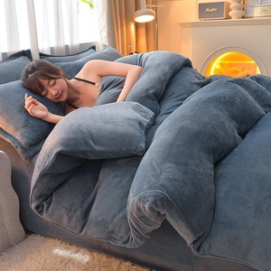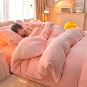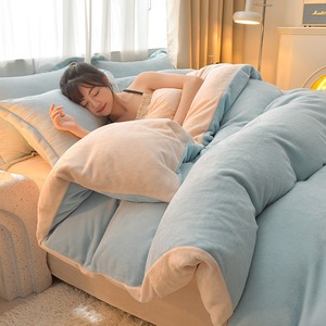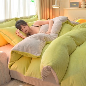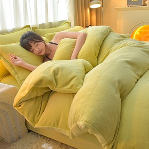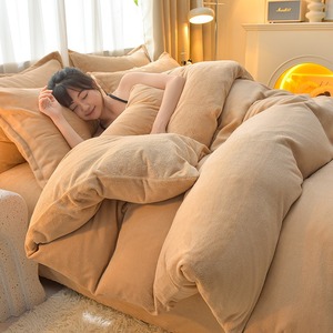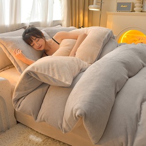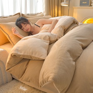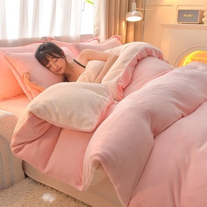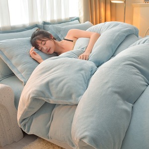 ins牛奶绒四件套纯色双拼双面绒被套宝宝绒床单法莱绒宿舍三件套