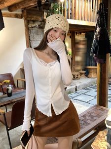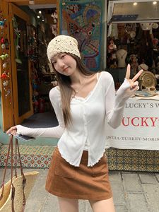 纯欲V领薄款木耳边防晒开衫女2025秋季新款纽扣修身外搭针织上衣