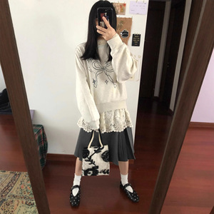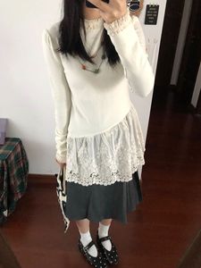 蕾丝拼接德绒打底衫女秋冬2025新款修身别致长袖t恤内搭外穿上衣