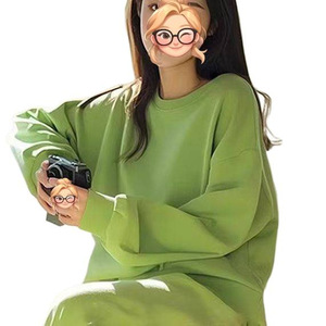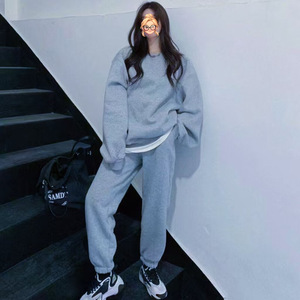 胖MM大码2-300斤秋冬季感假两件休闲套装纯色卫衣运动两件套跨境