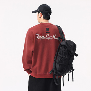 安洋重磅美式复古卫衣男2025秋季新款宽松潮牌刺绣圆领休闲上衣服