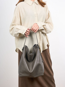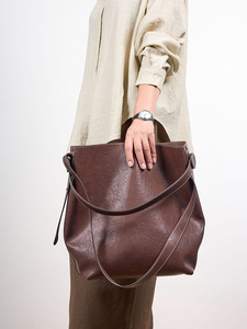 时尚真皮复古腋下女包新款大容量单肩包松弛感水晶植鞣牛皮托特包