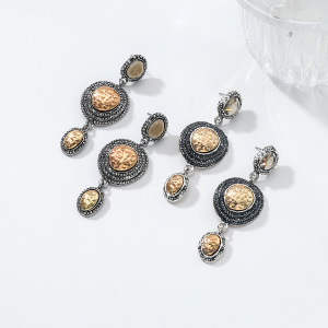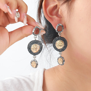 ZA欧美夸张复古满钻水滴吊坠几何耳环高级感冷淡风女耳饰跨境货源