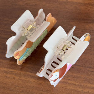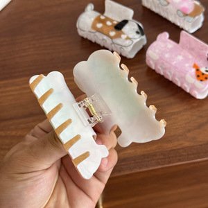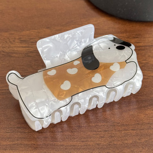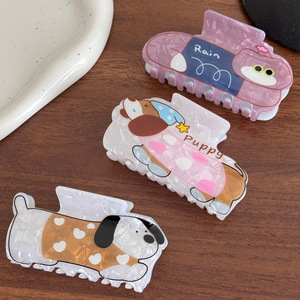 可爱卡通小狗抓夹大号盘发夹子高马尾鲨鱼夹百搭发夹仿醋酸发饰