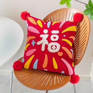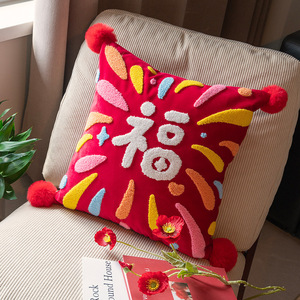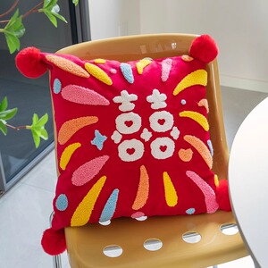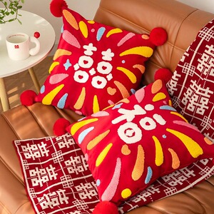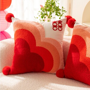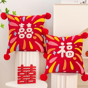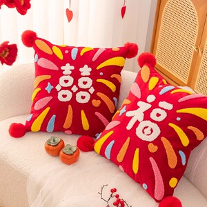 结婚喜字抱枕绣花毛绒婚庆腰靠爱心陪嫁婚房沙发客厅红色枕头靠枕