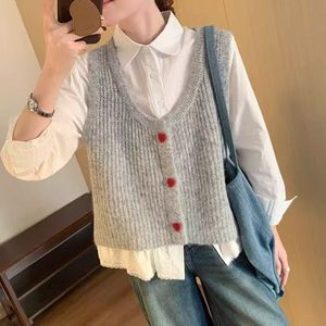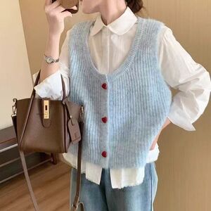 春夏新品甜美爱心毛衣开衫马甲春秋新款韩系气质减龄显瘦坎肩上衣