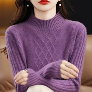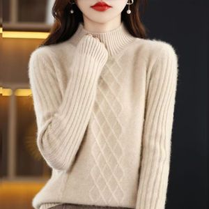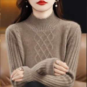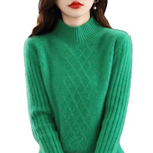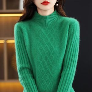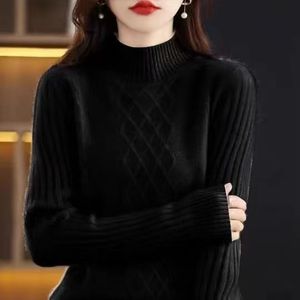 半高领菱形提花针织衫毛衣女秋冬慵懒风软糯宽松洋气气质百搭上衣