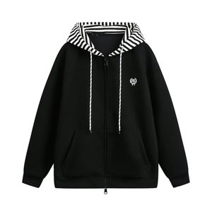 美式复古拼接条纹连帽卫衣男女秋冬季宽松百搭拉链开衫慵懒外套潮